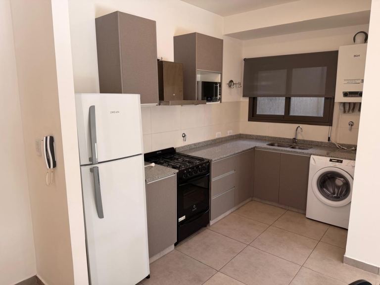 En una ubicación privilegiada de Mendoza, en Godoy Cruz, se encuentra este hermoso departamento. La propiedad se encuentra en un primer piso, accesible por escalera, y cuenta con un amplio living comedor equipado con aire acondicionado. La cocina está completamente equipada y cuenta con lavandería para mayor comodidad.