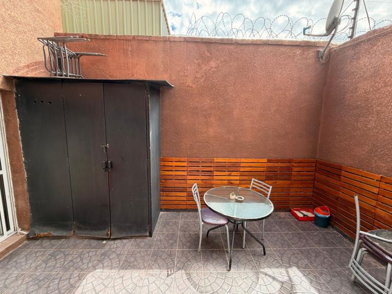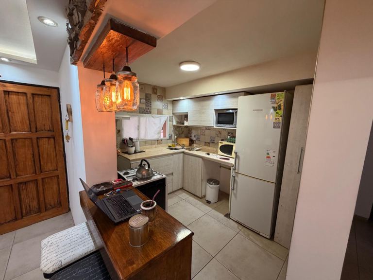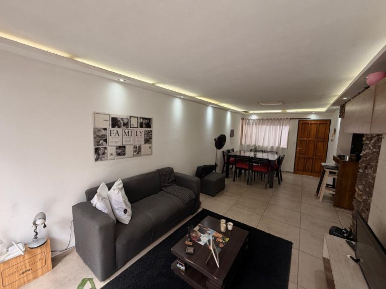 Al ingresar a la propiedad, nos recibe un amplio living comedor luminoso con puerta ventana al patio, con una barra desayunadora que separa la cocina, cocina totalmente equipada. Además, cuenta con un baño de visita completo para mayor comodidad de los residentes y visitantes. Desde el living, se accede a un acogedor patio con mueble donde esta la lavandería.