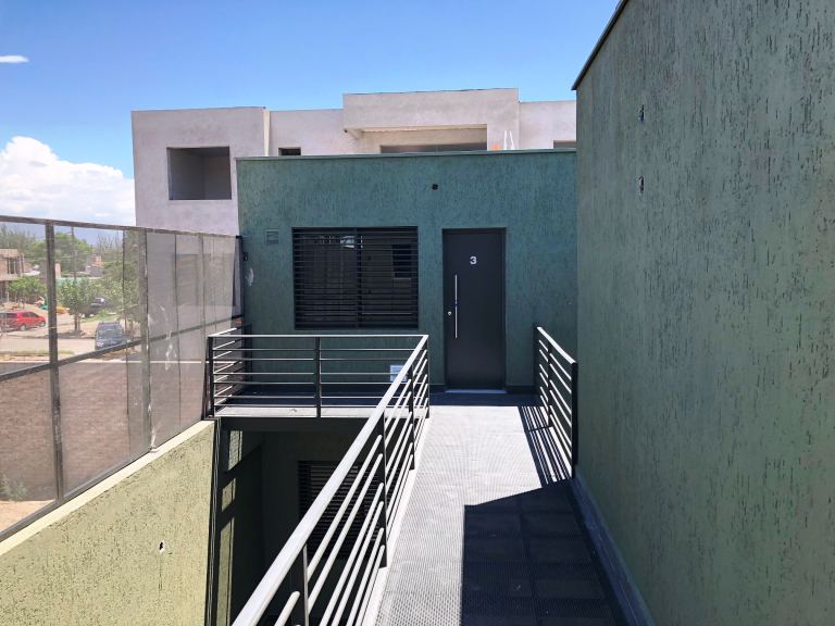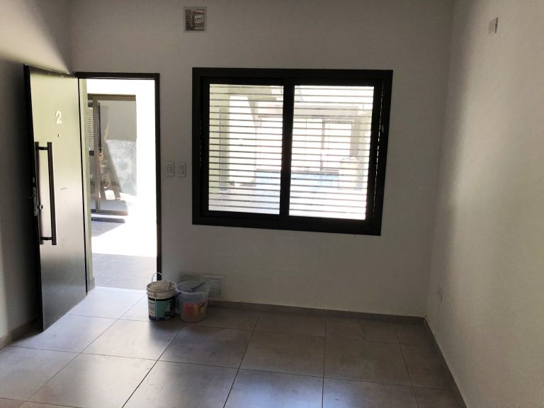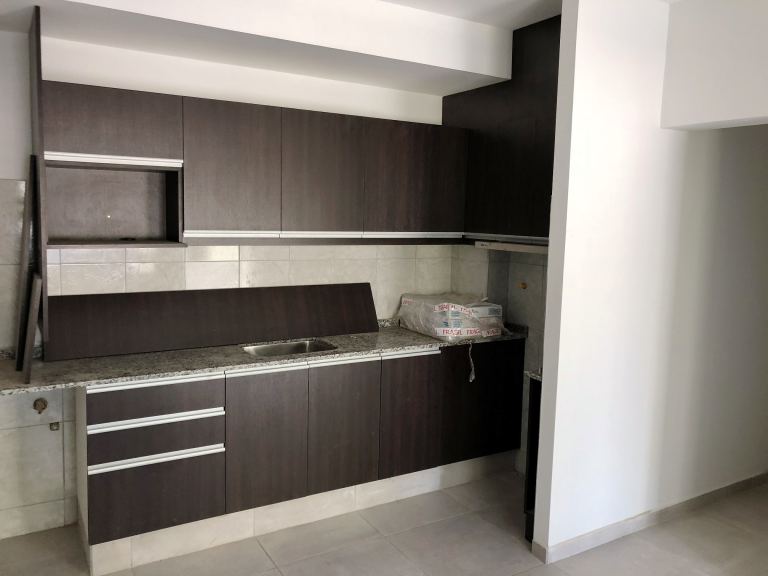 Departamento en primer piso por escalera con una superficie Cubierta de 45 m2 aproximados. Consta de living comedor con cocina integrada, excelente amoblamiento en bajo mesada y alacenas.