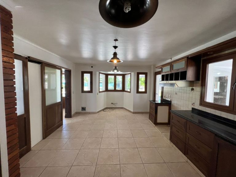 Casa desarrollada en dos plantas, distribuida de la siguiente manera, en planta baja posee un hall recibidor y distribuidor, amplio comedor, living con hogar a leñas muy cómodo, escalera hacia cava de vinos en subsuelo y a la segunda planta; escritorio el cual podría ser un dormitorio ya que cuenta con baño completo, amplia cocina comedor, amoblamiento de alacenas y bajo mesada, despensa separada complacares muy amplios, lavanderia separada.