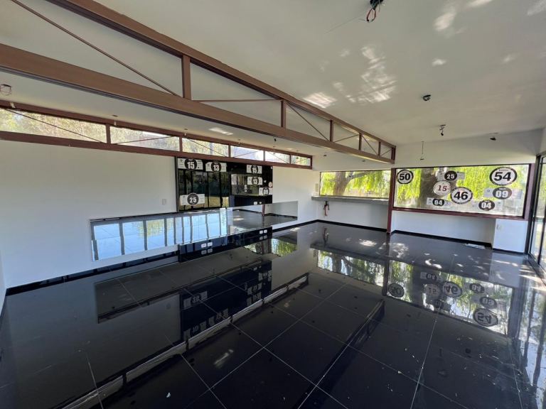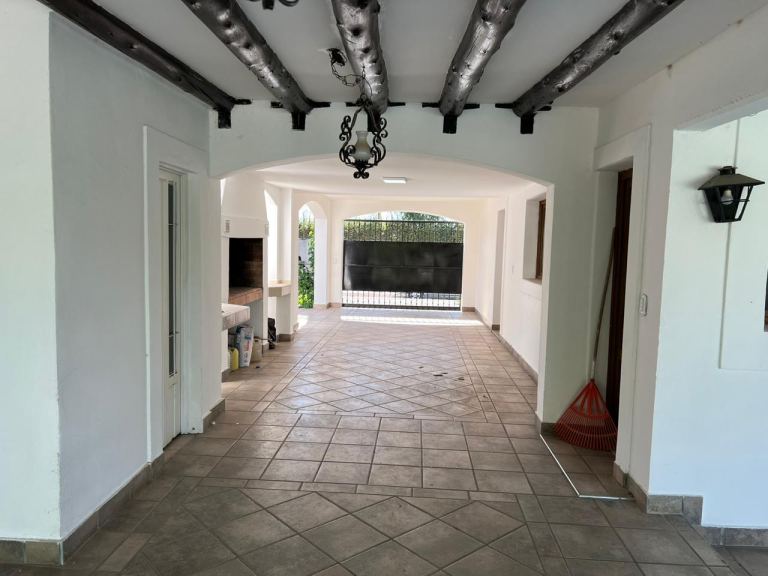Cochera para dos/tres autos en linea techada, la cual se junta con galería que dá hacia el parque y pileta, con churrasquera, deposito y baño.