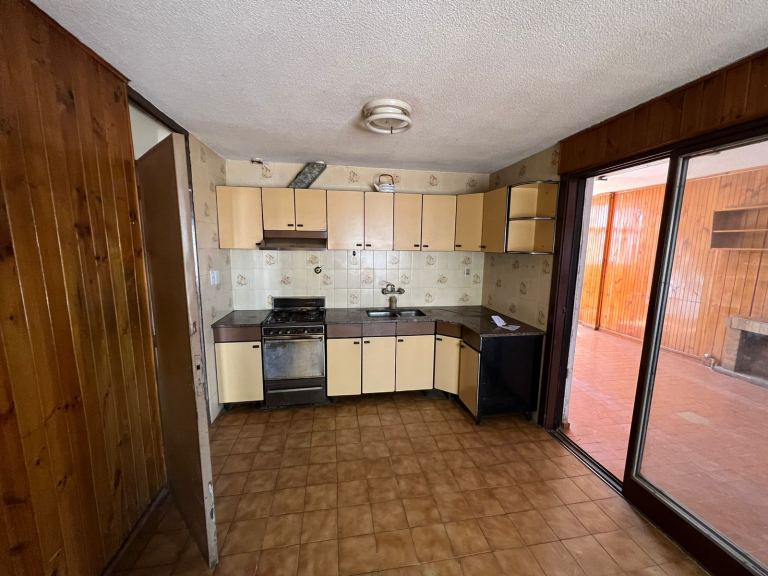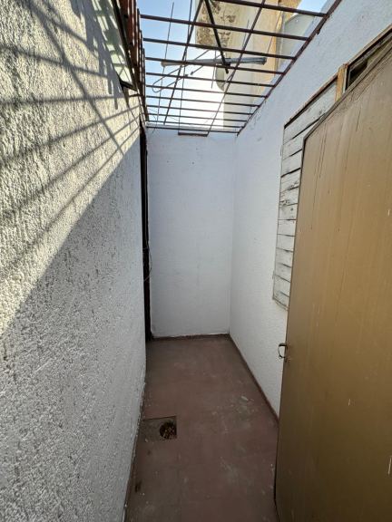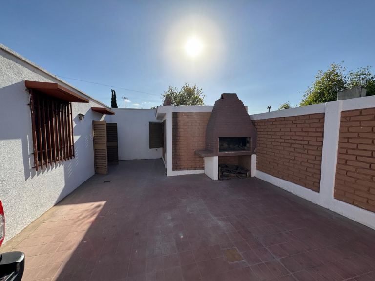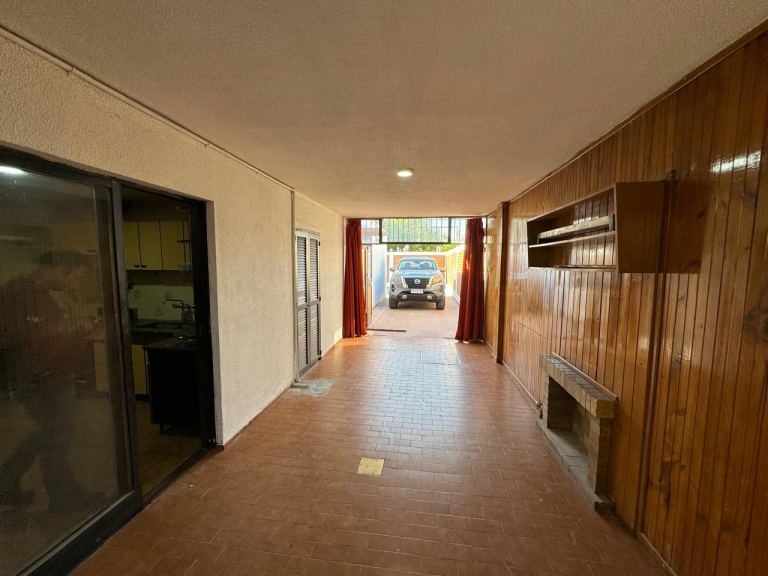 Patio en "L" con churrasquera, cuarto de lavado (a reciclar) y cochera techada para un vehículo, pasante para otro mas descubierto.