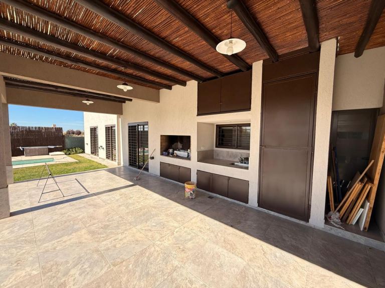 COCHERA PARA 2 VEHICULOS A LA PAR, GALERIA, CHURRASQUERA, JARDIN PARQUIZADO CON RIEGO POR ASPERSION, PISCINA DE PVC CON EQUIPO COMPLETO Y CALEFACCIONADA.
