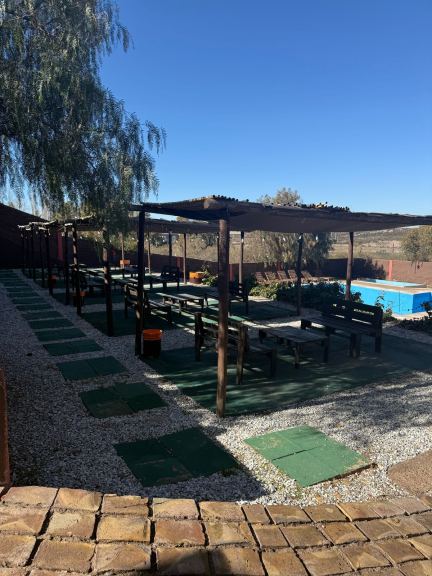Además, el complejo cuenta con 7 cocheras techadas, un depósito, zona de juegos para niños, una piscina de material de 87 m2 con sistema de bomba, jardin con reposeras para relajación, riego por aspersión en la zona de la piscina, 2 cisternas con bombas para un excelente servicio de agua, gas natural y luz.