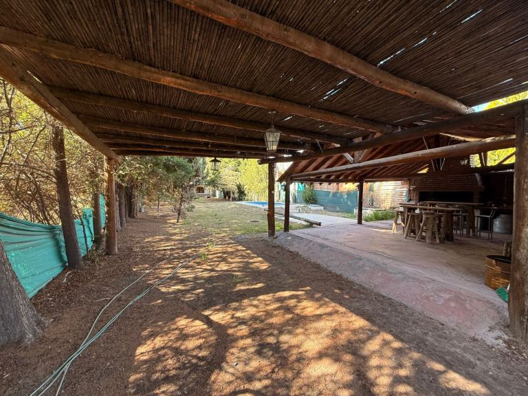 Uno de los puntos destacados de esta casa quinta es el quincho de 45 m2 cubiertos, equipado con una hermosa churrasquera para disfrutar de deliciosas comidas al aire libre, posee deposito de guardado y uno de los baños.